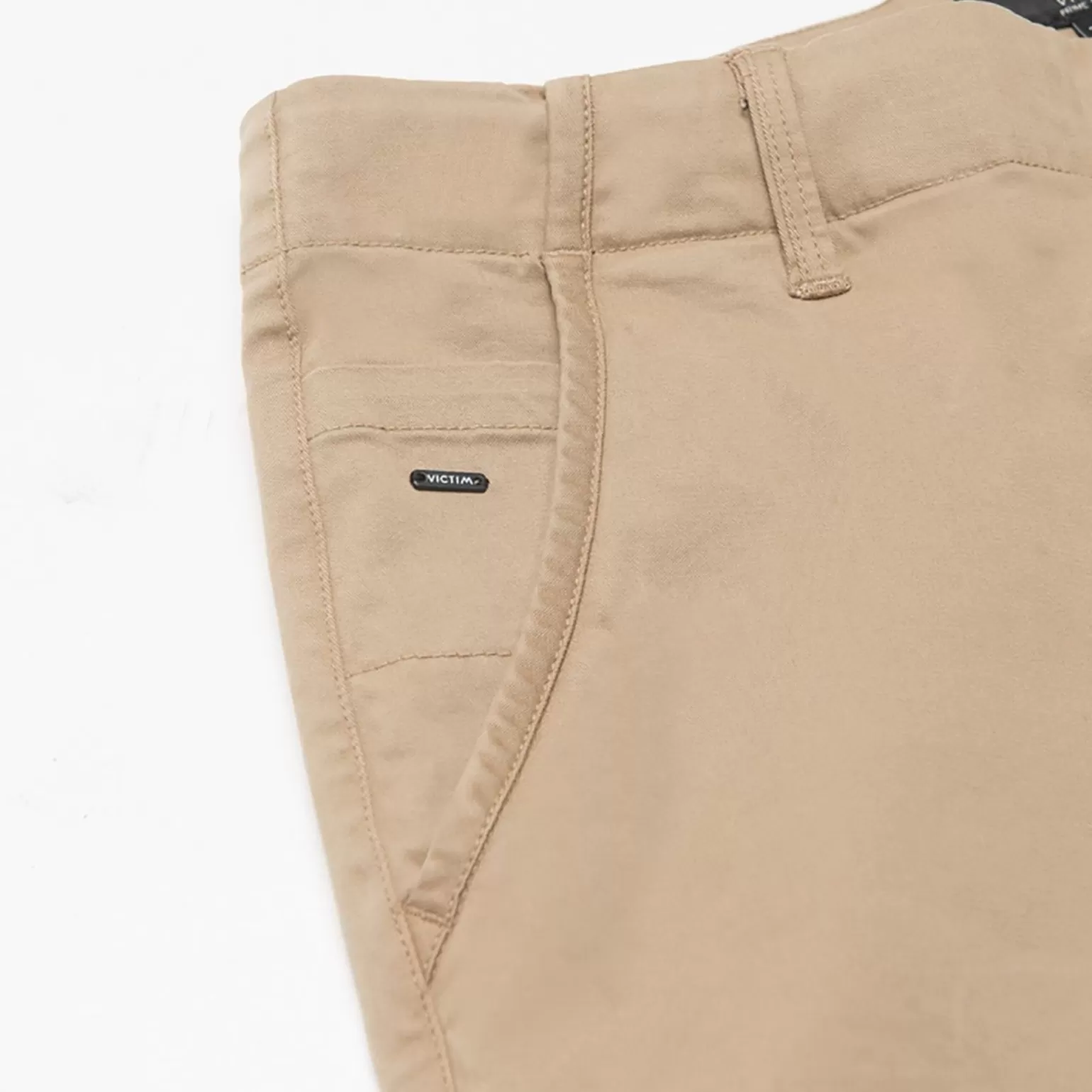 Een Chino Van Victim. Deze Chino Heeft Een Slim Fit Pasvorm En Een Ritssluiting. Daarnaast Heeft Deze Short Aan De Voorkant Twee Steekzakken En Een Kleine Zak. Aan De Achterkant Zitten Twee Zakken Met Een Knoop. Draag Een Polo Op Deze Chino.