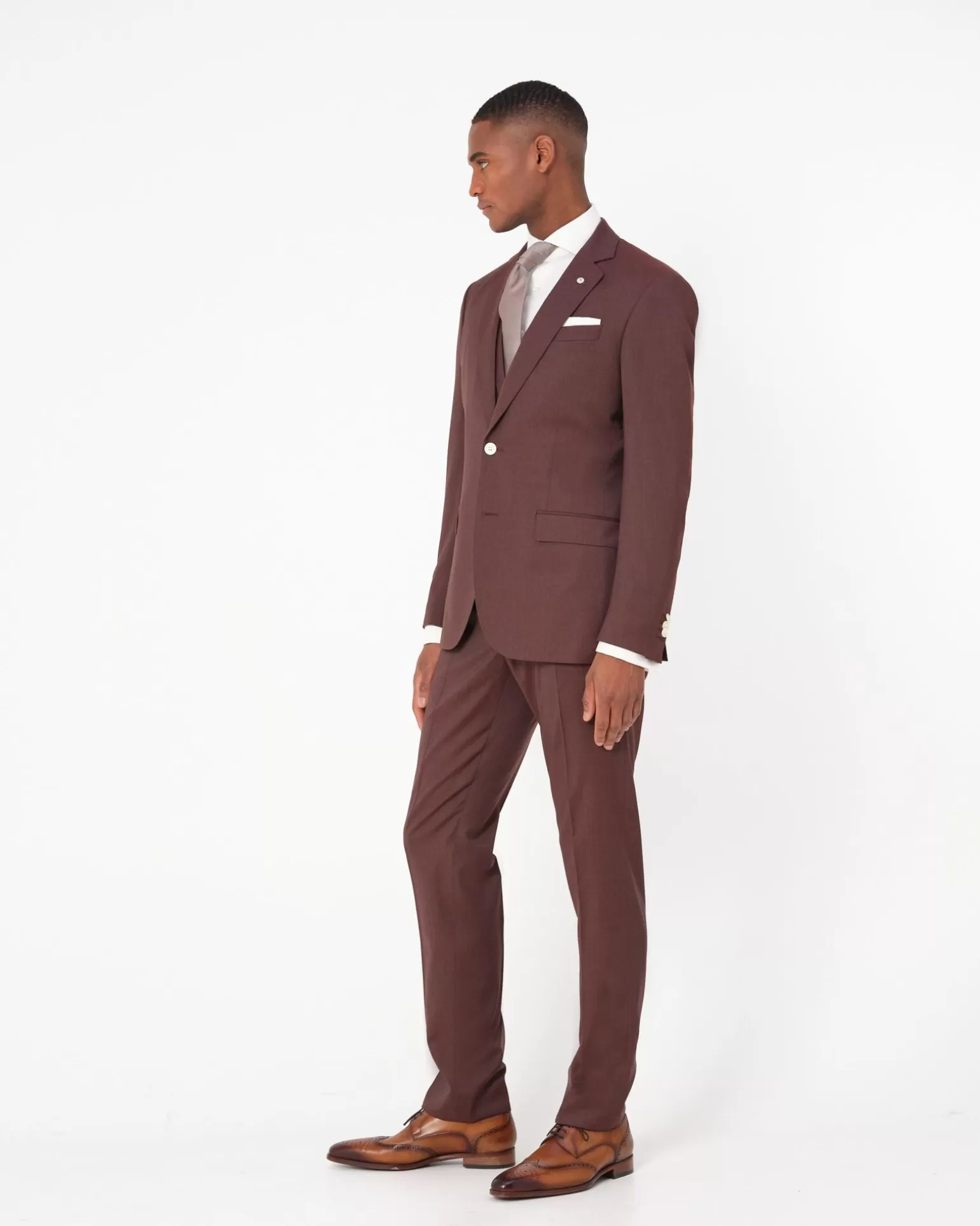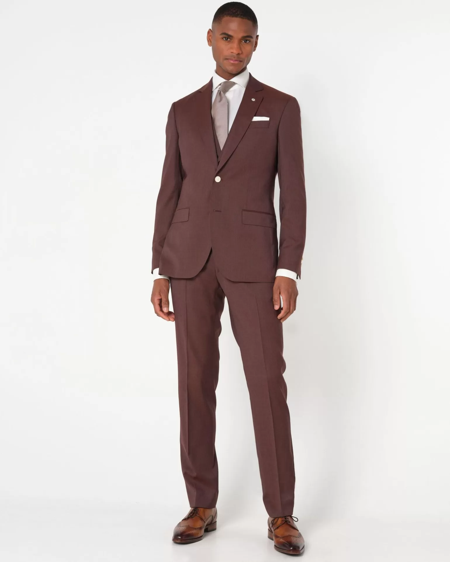Met Dit Trouwpak Wordt De ‘Mooiste’ Dag Van Je Leven Wel Heel Mooi! Dit Driedelige Pak In Slimfit Pasvorm Is Gemaakt Van Soepele Wol. Valt Mooi En Draagt Heerlijk. Het Bordeaux Rood Combineert Prachtig Met Een Offwhite Overhemd En Bijpassende Das. Het Jasje Is Geheel Gevoerd En Heeft Twee Klepzakken En Twee Zijsplitten. Het Zal Zeker Een Ja Worden!