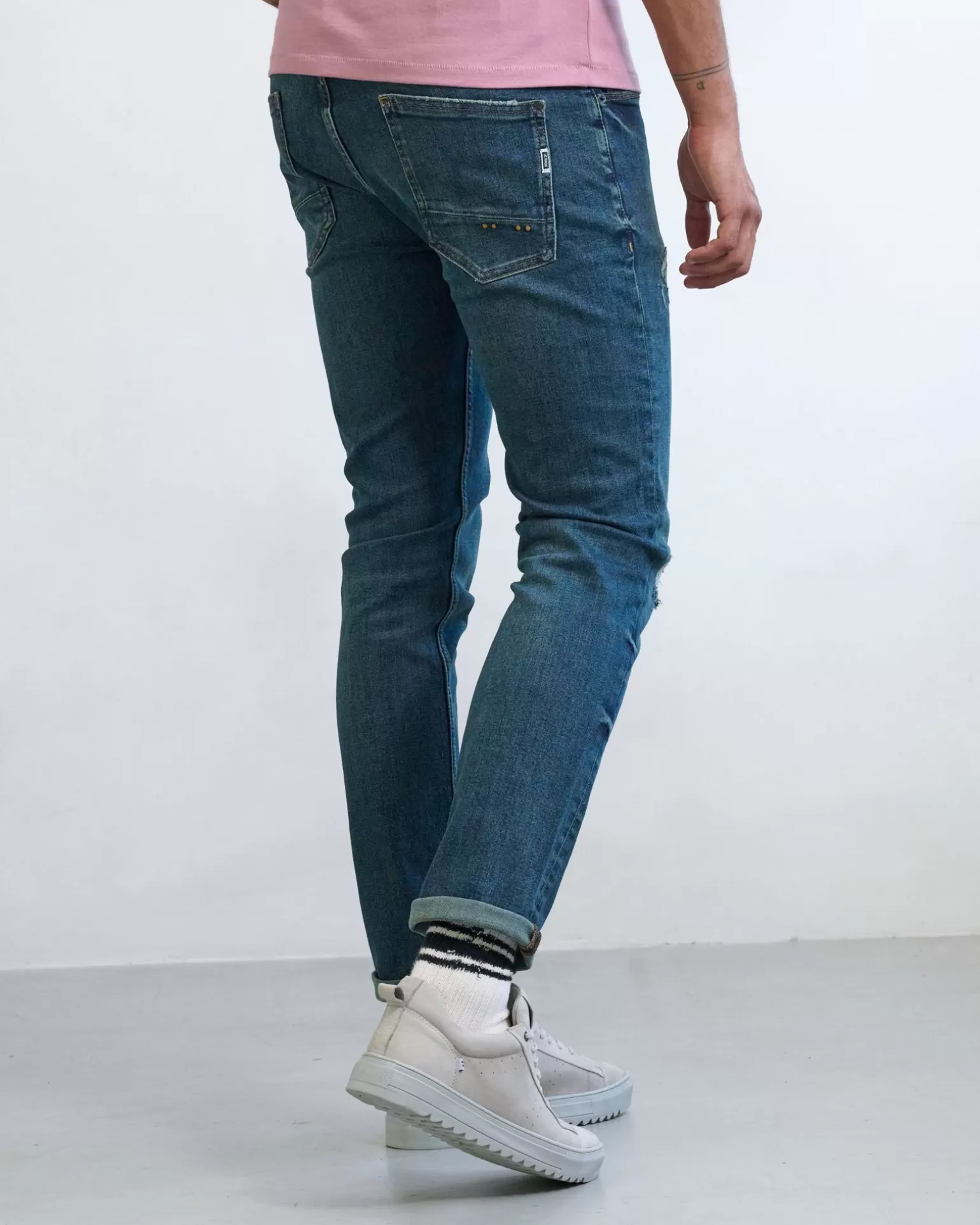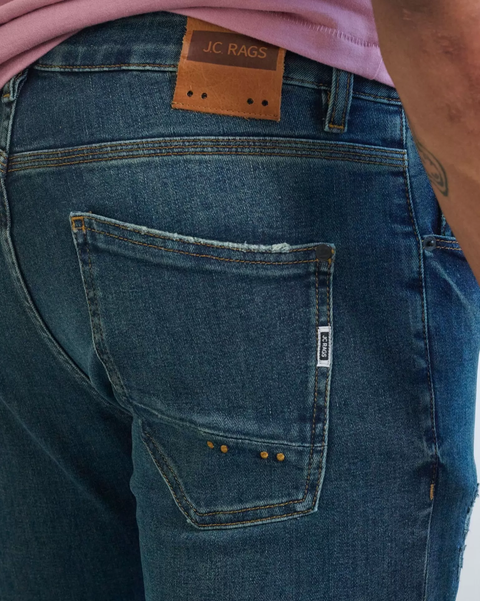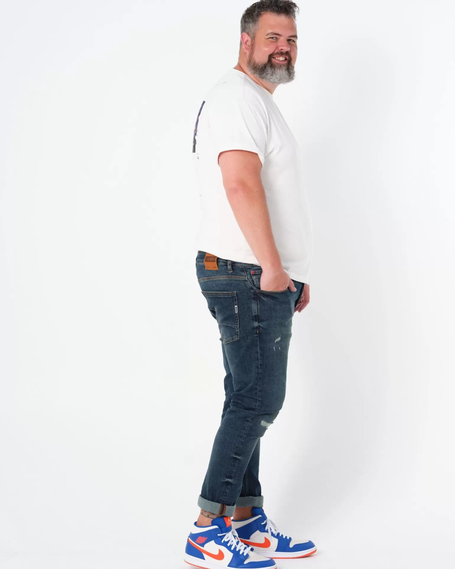 Alles Over Dit Product Een Nieuwe Denim Met Een Nieuwe Pasvorm. De “Joah” Is Een Tapered Fit, Oftewel De Jean Loopt Taps Toe Vanaf De Knie. Joah Is Op Het Bovenbeen, Op De Knie En Kuit 1 Cm Wijder Is Dan De Jimmy Wat Hem Dus Net Iets Ruimer Maakt Op De Benen En Kuiten. Onderin Aan De Voetwijdte Is Hij Dus Ook Wijder, Uitermate Geschikt Voor De Man Wie Zijn Jean Niet Te Strak Wil Dragen. Dit Zien We Natuurlijk Gebeuren Op Modegebied Dat Alles Wijder Wordt, Dus Ook De Denims Worden Wijder. Maar De Joah Is Zeker Niet Zo Wijd Als De Jethro!Voor De Joah Washed Scraped, Heavy Washed En Dark Blue Hebben We Gekozen Voor Zwaardere, Dikkere Doeken Maar Wel Met Een Comfortabele Mix Van Katoen, Polyester En Elastane Om Er Een Fijn Draagcomfort Aan Te Geven. Doordat De Doeken Zwaarder En Dikker Zijn Kunnen We Er Een Wat Meer “Authentic Denim Look” Aan Geven. De Wassingen Worden Dus Net Wat Toffer En Zijn Zwaarder Ingewassen Voor Een Natuurlijke Used Look.Joah Heavy Washed Scraped Jeans, Ook Wel Ripped & Repaired, Alle Beschadigingen Zijn Opnieuw Dicht Gestikt (Zigzag) Met Aan De Binnenzijde Hetzelfde Doek Als De Denim Voor Extra Stevigheid!Voor De Joah Denims Hebben We Gekozen Voor De Volgende Details. Op De Voorkant:•Zoals Al Eerder Vermeldt Een Meer Gewassen Look Voor De Natuurlijke Used Look.•Button Fly Oftewel Een Knoopsluiting. (Jimmy Zal Vanaf Augustus Met Ritssluiting Worden).•De 2E Knoop Is De Bekende “Iconic Red Button”.•De Rode Stud Op De Coin Pocket.•De Zigzag Afwerking Van De Coin Pocket. Laatste 3 Genoemde Al Bekend Van De Jimmy.