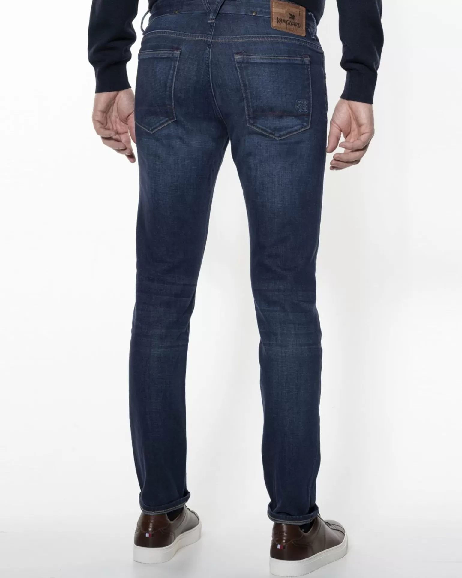 De Vanguard V85 Jeans Is Gemaakt Van Candiani Denim En Op Een Milieuvriendelijke Wijze Geproduceerd. De Combinatie Van Italiaanse Stoffen En Authentieke Denim Finish Zorgt Ervoor Dat De Jeans Erg Comfortabel Draagt. Het Is Een Slim-Fit Model Met Speciaal Gemaakte Houten Knopen En Heeft Een Donkerblauwe Wassing Voor Een Stoer Effect.