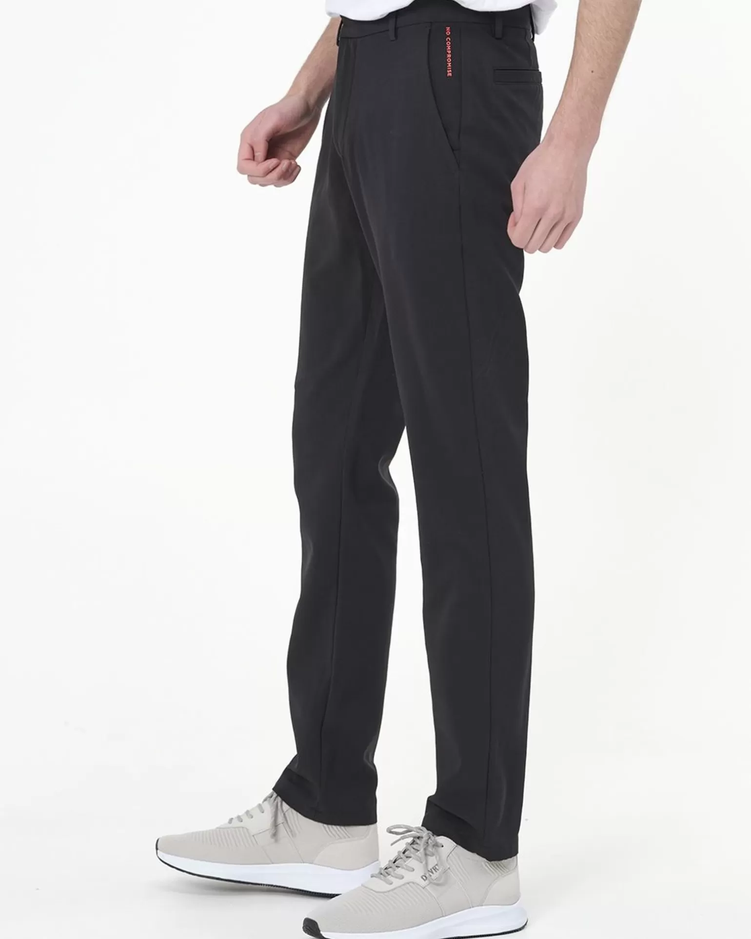 Alles Over Dit Product Deze Donkervoort Chino Is Een Fijne Broek Met Hoog Draagcomfort. De Chino Bestaat Namelijk Uit 90% Polyester En 10% Elastaan Waardoor Het Een Flexibele Stof Is Die Glad Aanvoelt. De Chino Heeft Twee Steekzakken Voor, Met Aan De Linkerkant Een Extra Zakje Met Ritssluiting. Ook Heeft Het Twee Paspelzakken Achter, Waarvan De Een Een Ritssluiting Heeft En De Ander Niet. De Sluiting Van De Chino Bestaat Uit Een Drukknoop En Rits. Verder Heeft Het Riemlussen En Een Rood Detail Met De Tekst ”No Compromise”. Door De Felle Kleur Van Dit Accent Staat Het Mooi Af Tegen De Neutrale Effen Kleur Van De Chino. Dit Geeft Een Mooie Touch En Maakt De Chino Helemaal Af. Combineer De Chino Mooi Met Een Overhemd Voor Een Casual Chic Look.