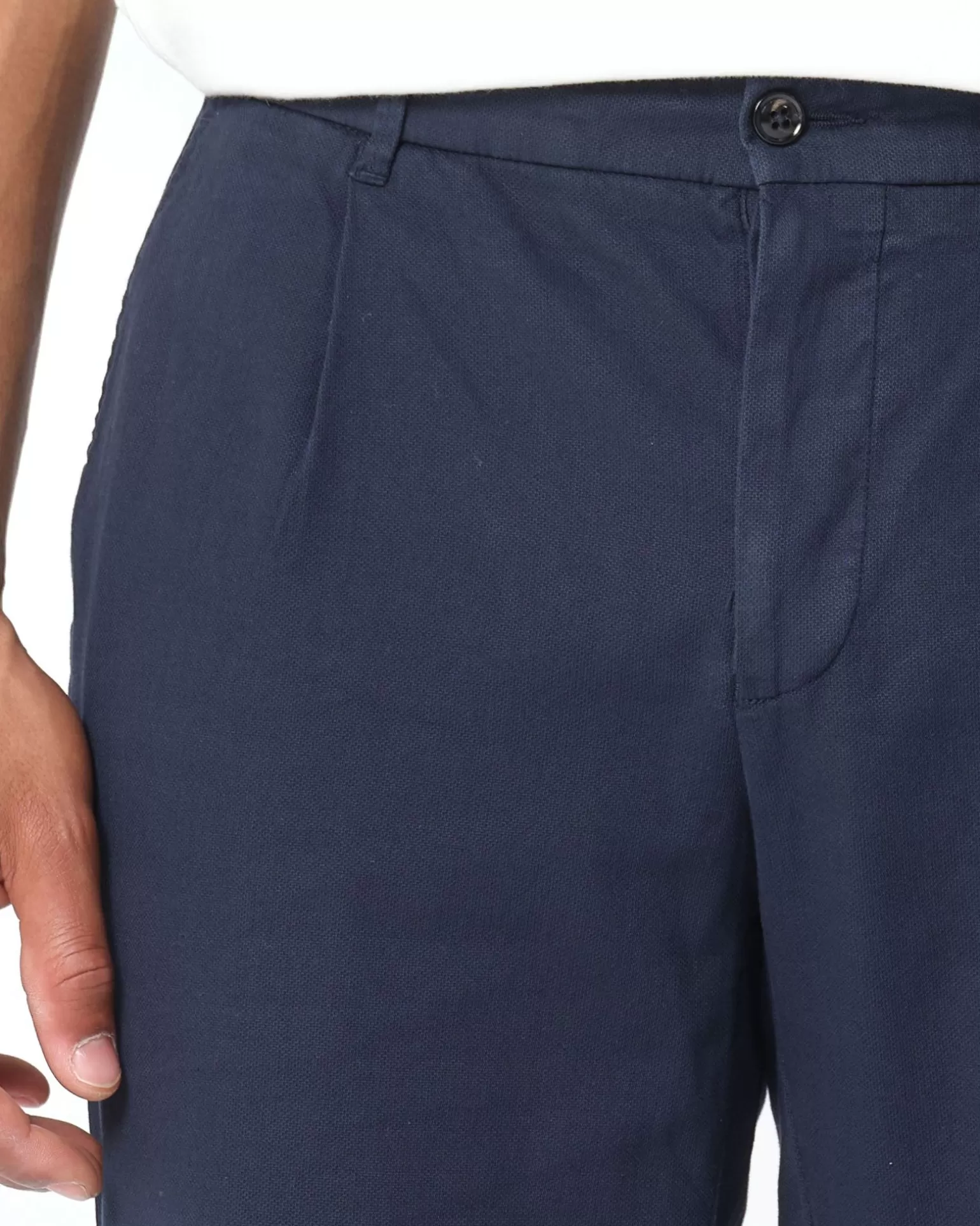 Alles Over Dit Product Deze Donkerblauwe Chino Is Gemaakt Van Een Katoen En Elastaan Blend En Draagt Heel Comfortabel En Licht. De Chino Is Een Prachtig Item Voor De Zomer En Is Gemakkelijk Te Combineren. Draag Het Bijvoorbeeld Met Een T-Shirt En Een Paar Loafers Voor Een Stijlvolle, Zomerse Outfit. Verder Is De Broek Voorzien Van Twee Steekzakken Aan De Voorkant En Twee Paspelzakken Aan De Achterkant. De Broekband Is Deels Elastisch En Voorzien Van Riemlussen.