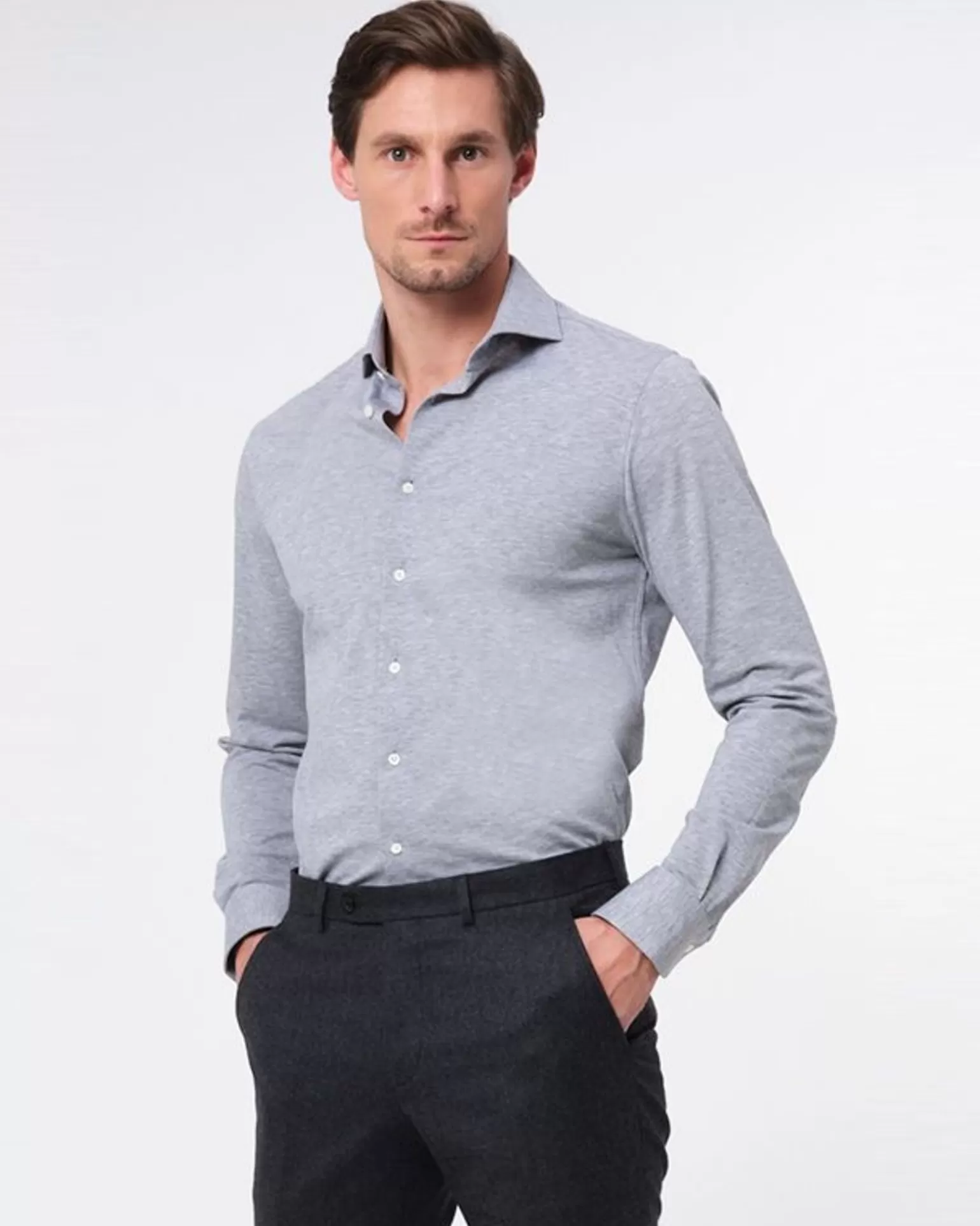 Alles Over Dit Product Grijs Uni Overhemd Van Dutch Dandies In Soepele En Zachte Tricot. Dit Shirt Stretcht En Draagt Als Een Polo En Heeft Een Luxe Uitstraling. Prachtig Onder Een Pak Of Een Colbert Te Combineren, Maar Ook Meer Casual Met Bijvoorbeeld Een Jeans Supermooi!